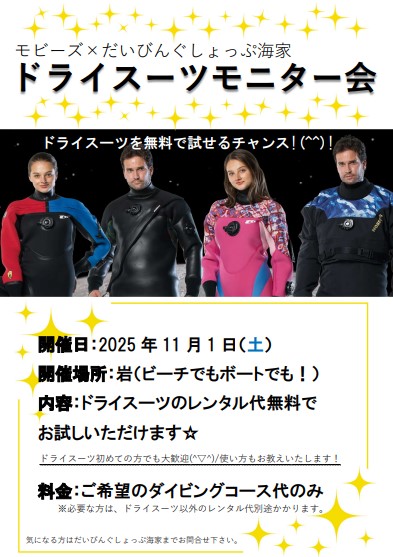 という事でこのこの日はドライスーツのレンタル代が無料でお試しいただけます♪